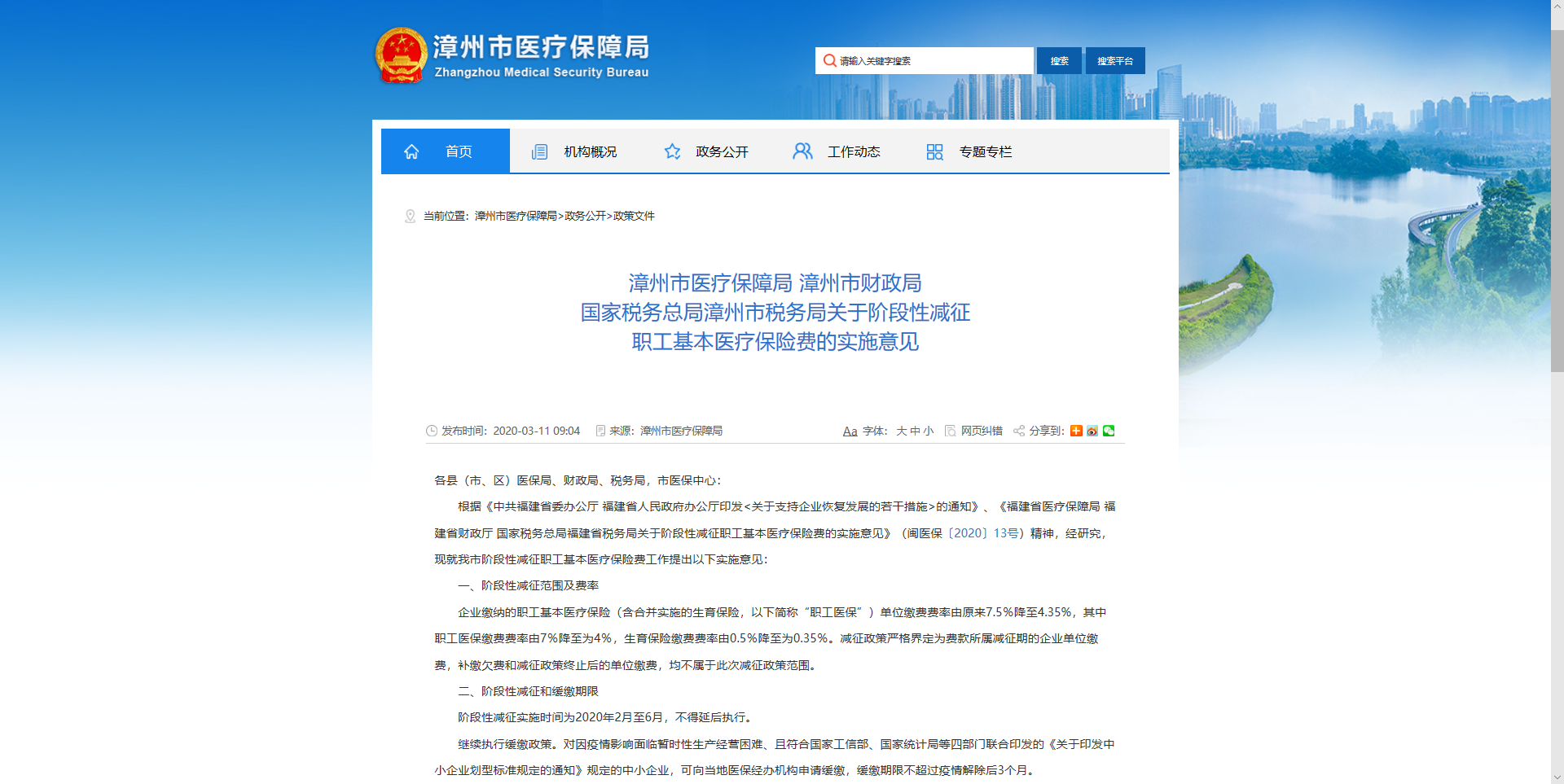 根据《中共福建省委办公厅 福建省人民政府办公厅印发<关于支持企业恢复发展的若干措施>的通知》、《福建省医疗保障局 福建省财政厅 国家税务总局福建省税务局关于阶段性减征职工基本医疗保险费的实施意见》(闽医保〔2020〕13号)精神,经研究,现就我市阶段性减征职工基本医疗保险费工作提出以下实施意见: