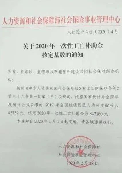 因《工伤保险条例》在全国统一执行,故2020年度一次性工亡补助金全国统一标准为847180元,相比上年度的785020元,增加了62160元。这个标准没有地域之分,全国统一。