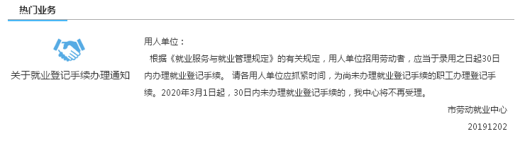 变化1:就业登记必须和社保同步,且劳动合同开始时间一致。先就业登记才能社保增员,先失业登记才能社保减员。