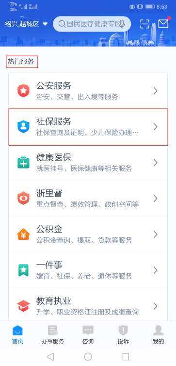 “热门服务”中找到“社保服务”