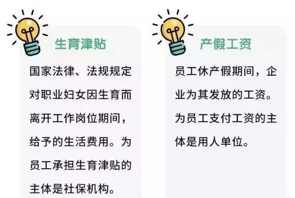 生育津贴=产假工资的替代部分,生育津贴与产假工资不能重复享受,两者可以取高的。