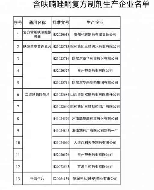 在公告中,国家药监局给出了四种禁用的含呋喃唑酮的复方制剂,分别为复方雪胆呋喃唑酮胶囊、呋喃苦参黄连素片、二维呋喃唑酮片、谷海生片,多用于治疗消化系统炎症。