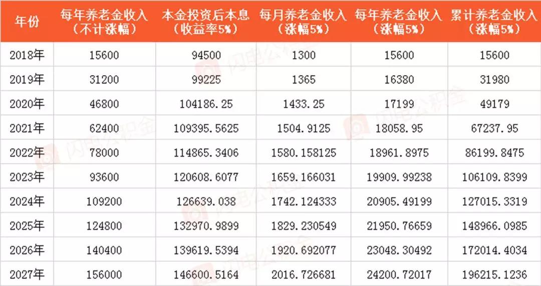 最简略的算法,便是抛开养老保险金每年的涨幅,以及本金生息这些要素,单纯的算多少年能“回本”。投入9万元,每年领回15600元,差不多第6年就能回本了。