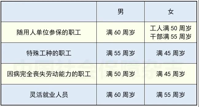 “达到法定退休年龄”如下表: