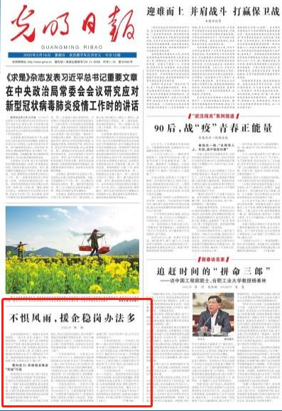 2月16日,《光明日报》头版发表文章《不惧风雨,援企稳岗办法多》,报道各地援企稳岗做法,其中,南宁市率先落地疫情期间稳岗返还政策获点赞!