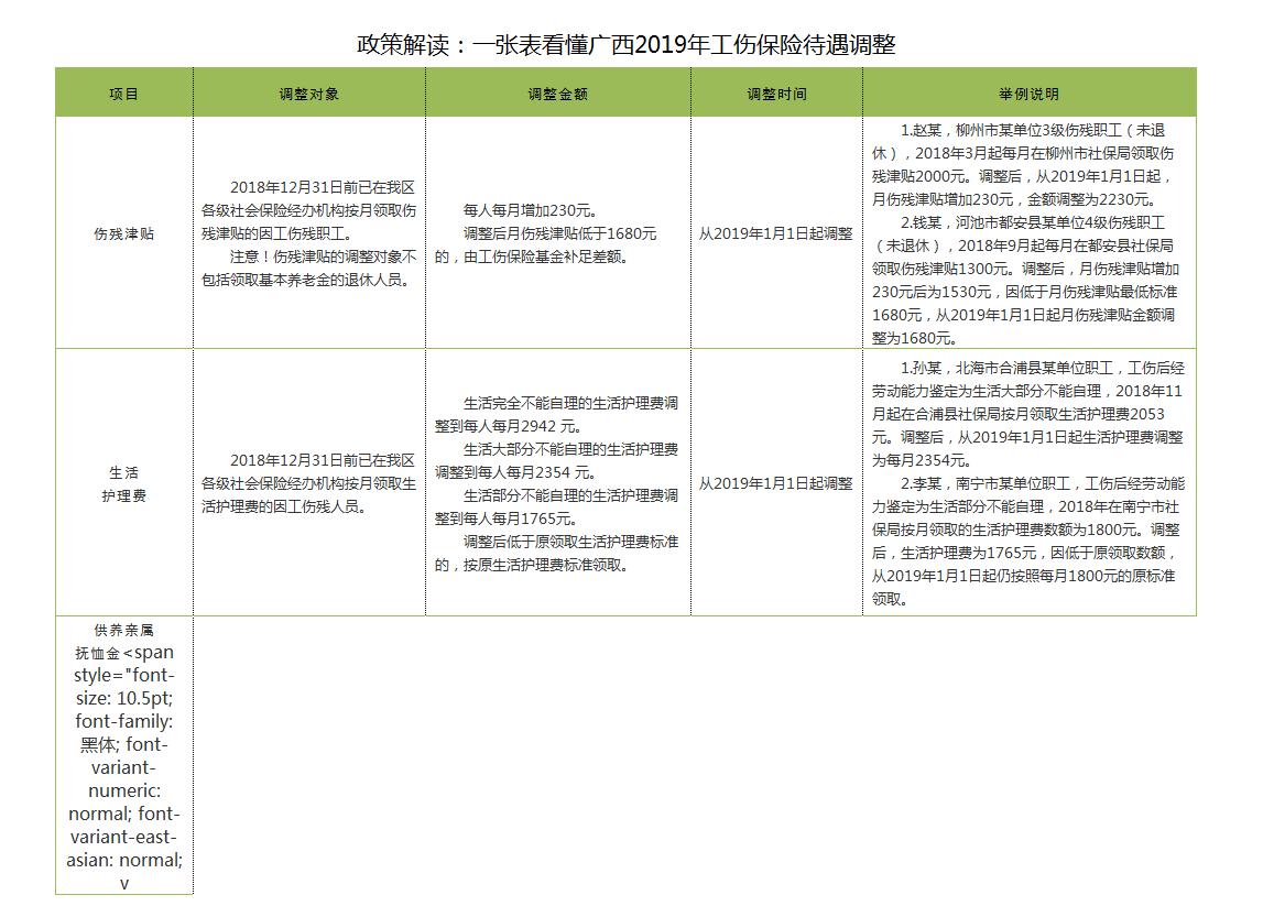 为进一步提升我区工伤保险保障能力和水平,近日,广西壮族自治区人力资源和社会保障厅发布了《关于调整2019年工伤保险待遇的通知》,决定从2019年1月1日起统一调整全区工伤保险待遇。