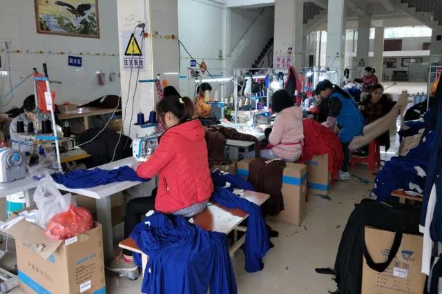▲隆安县村民在就业扶贫车间—隆安县惠民制衣加工厂工作