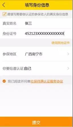 ④输入参保人资料和认证关系,点击提交