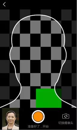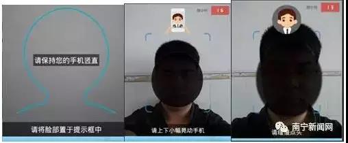 将脸部至于提示框后,根据语音提示完成简单的动作操作。如:上下小浮动晃动手机,缓慢上下点头,左右摇头等操作,进行脸部活体特征采集。