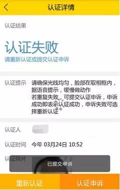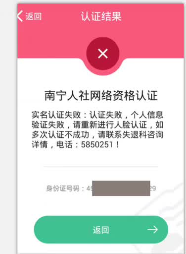 因网络问题、没办理二代身份证、或者公安部信息库相片缺失等因素,导致认证失败时,系统会返回认证失败的提示。