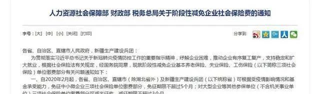 先说一下,此消息确实是真的消息。按照人社部2020年2月20日发文《关于阶段性见面企业社会保险费费的通知》:自2020年2月起,各省、自治区、直辖市(除湖北省外)及新疆生产建设兵团可根据受疫情影响情况和基金承受能力,免征中小微企业三项社会保险单位缴费部分,免征期限不超过5个月;对大型企业等其他参保单位(不含机关事业单位)三项社会保险单位缴费部分可减半征收,减征期限不超过3个月。湖北省可免征各类参保单位(不含机关事业单位)三项社会保险单位缴费部分,免征期限不超过5个月。