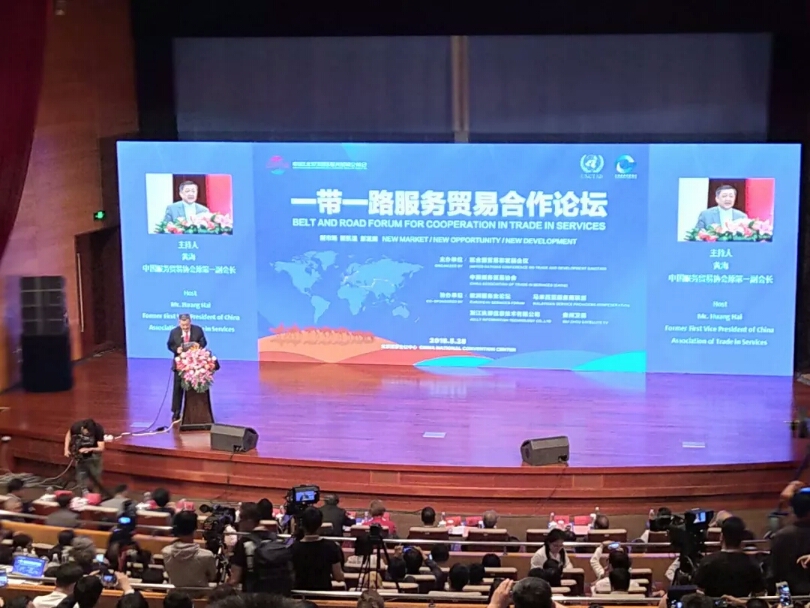 下午,由联合国贸易和发展会议、中国服务贸易协会主办的“首届一带一路服务贸易发展论坛”在国家会议中心会议区报告厅举行,本次论坛以“新市场、新机遇、新发展”为主题,共同就推动一带一路发展过程中如何扩大服务业开放,服务业推动全球产业复苏与推动一带一路服务合作机制建设三个方面开展相关讨论。