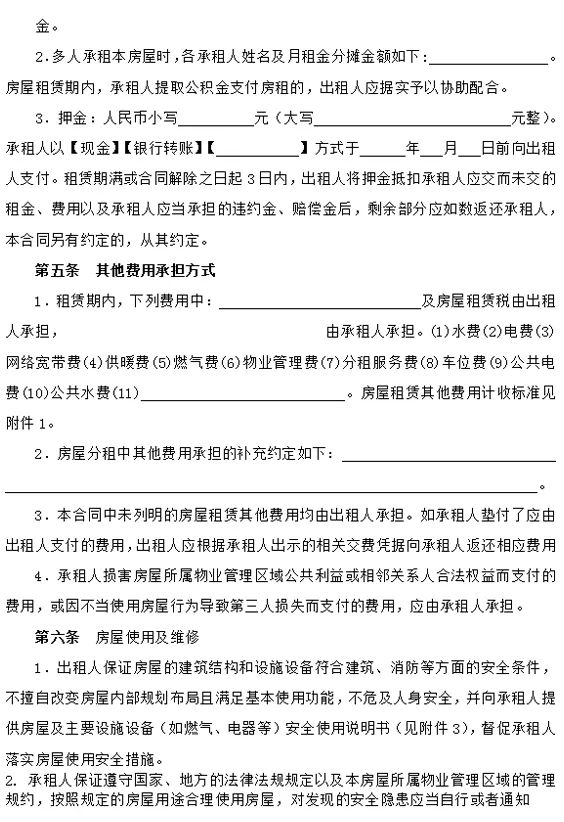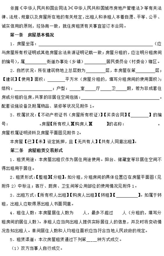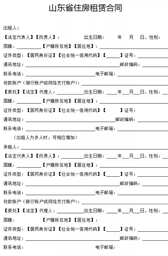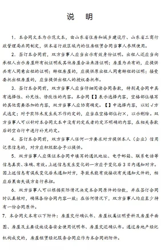 附:山东省住房租赁合同示范文本