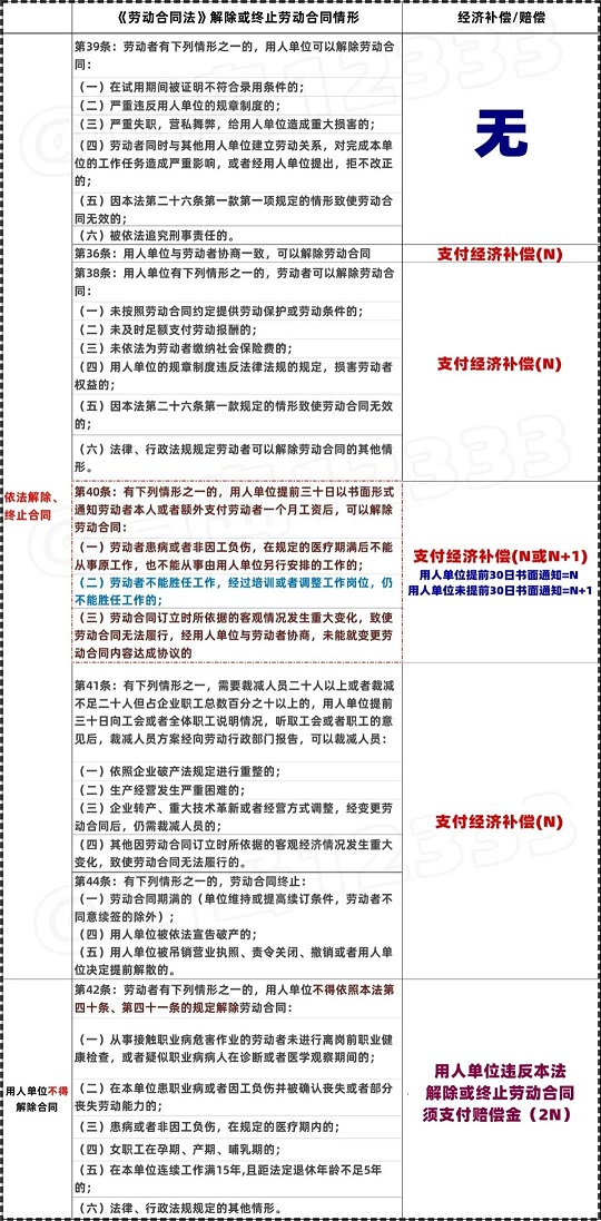 奉上经济补偿简明表一表看全
