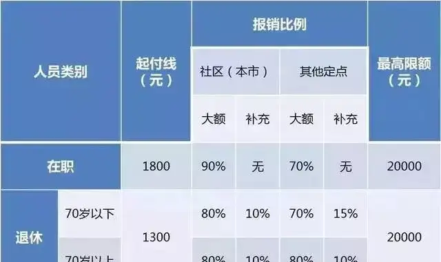 1、在职职工到医院的门诊、急诊看病后,1800元以上的医疗费用才可以报销,报销的比例为在社区医院90%、其他定点医院70%,最高限额可报20000元。