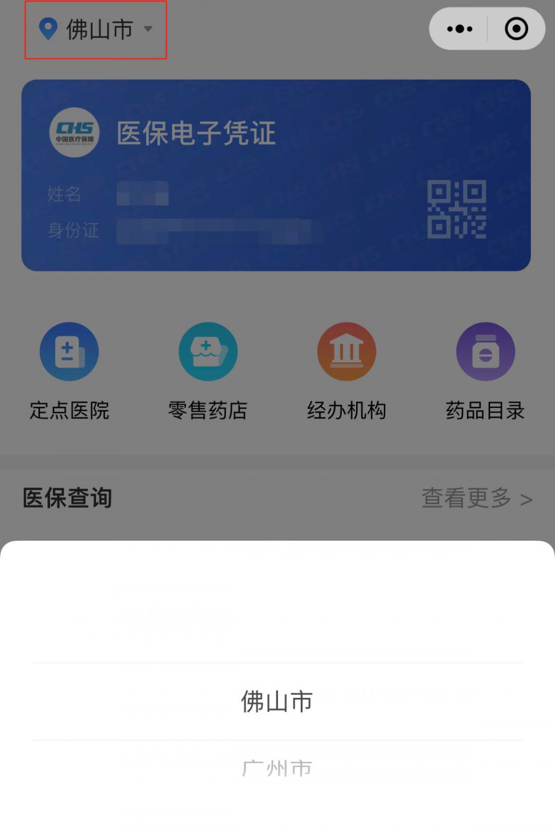 绑定个人账户后,在首页选择需要办理暂停参保业务的地市。