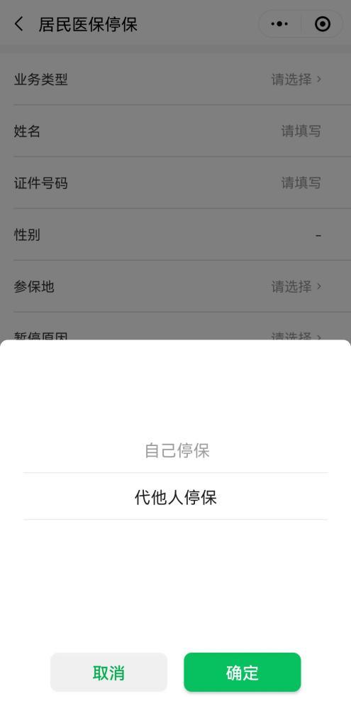 业务类型中,可选择“自己停保”或“代他人停保”。