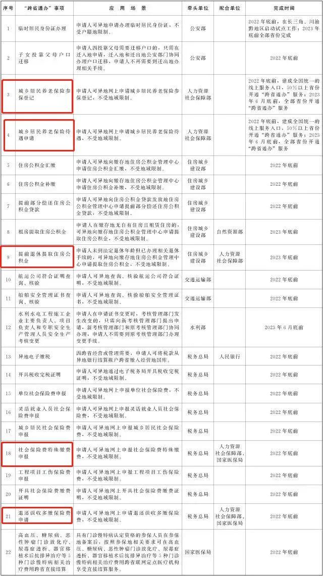 国务院办公厅日前印发《关于扩大政务服务“跨省通办”范围进一步提升服务效能的意见》,新增异地电子缴税、开具税收完税证明、单位社会保险费申报、临时居民身份证办理、城乡居民养老保险参保登记和待遇申请、5种门诊慢特病费用结算等22项政务服务“跨省通办”事项。