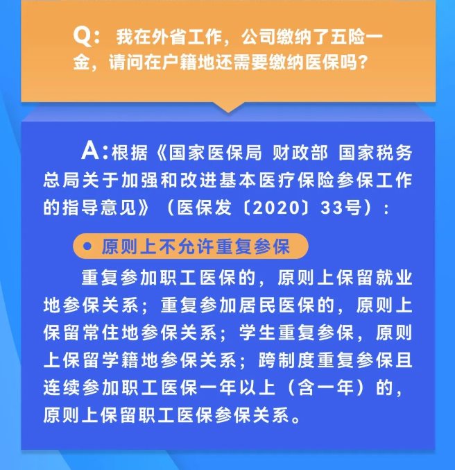 重复参加职工医保的,原则上保留就业地参保关系;重复参加居民医保的,原则上保留常住地参保关系;学生重复参保,原则上保留学籍地参保关系;跨制度重复参保且连续参加职工医保一年以上(含一年)的,原则上保留职工医保参保关系。