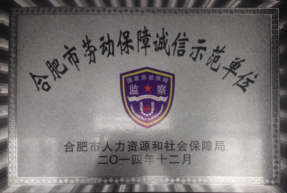 ◆2014年12月,远创人力连锁荣获2014年度“合肥市劳动保障诚信示范单位”荣誉称号。远创人力连锁是2014年度合肥市人力资源服务行业内唯一一家荣获此项殊荣的单位。