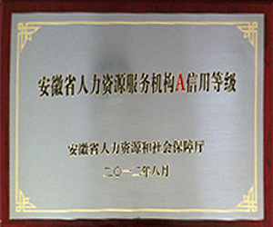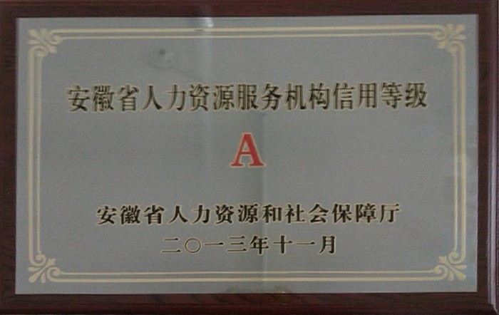 ◆2013年11月,远创人力连锁再次荣获安徽省人力资源和社会保障厅人力资源服务机构信用等级评定“A级信用等级服务机构”。
