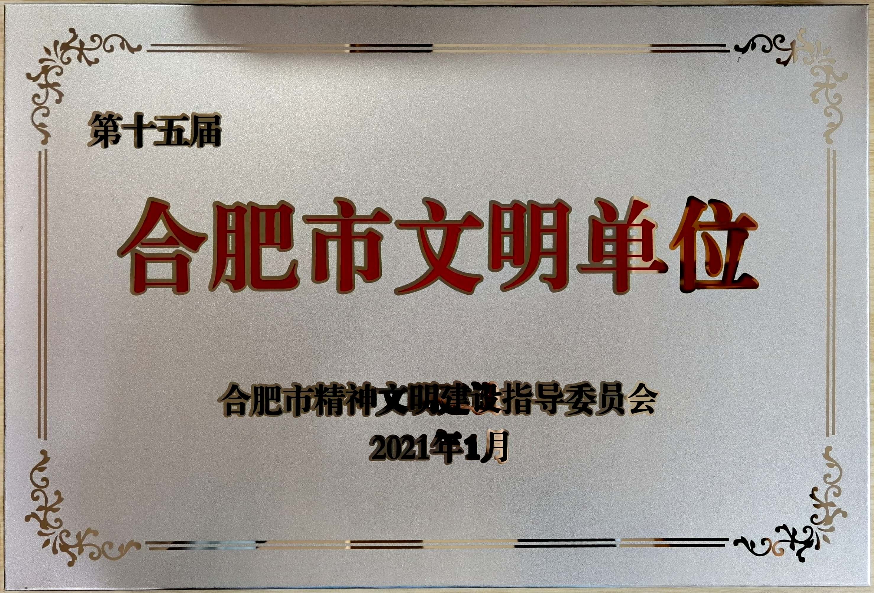 2021年1月,被合肥市精神文明建设指导委员会评为“第十五届合肥市文明单位”,已连续三届获此荣誉。