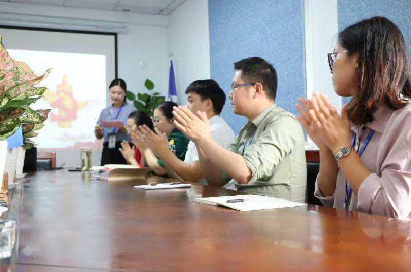 集团党支部书记唐燕岚女士给全体党员和入党积极分子做了《不忘初心、牢记使命》为主题的党课,党课围绕习近平总书记十九大报告精神,结合自身的认识和体会,深刻阐述了新时代中国共产党系列大政方针。