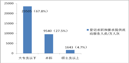 图4 登记求职和要求提供流动服务人员学历情况(单位:万人次)