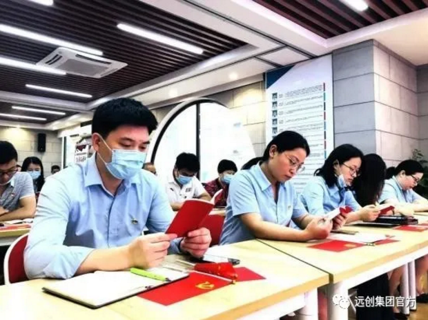 活动中,集团党支部书记唐燕岚带领全体党员再一次握紧右拳,在党旗前庄重宣誓,一同回忆着当年与党立下的誓约。在场的所有党员目光坚定,光荣自豪地念出宣誓人的名字。随后,在现代妇产医院党支部书记罗爱华的带领下,大家一起学习了《党章》部分内容,提醒着在场的每一位党员要铭记党员应尽的责任和义务,坚定党员的理想和信念。仪式最后一项,全体党员起立,摇动着手中的红旗与党旗,一同庄严肃穆地唱响《没有共产党就没有新中国》。红旗飘飘,歌声嘹亮,现场气氛热烈,令人心潮澎湃。