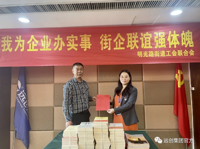 比赛开始前,为促进街企之间的友好协作关系,瑶海区明光路街道特将党史书籍80本赠予远创人力资源集团工会。