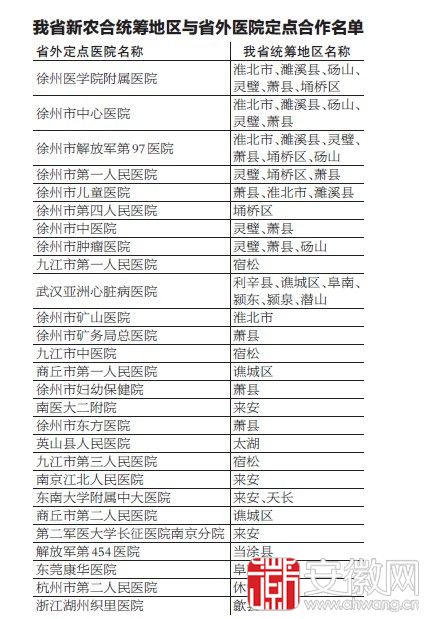 截至目前,我省共有21个市县与27家省外医院开展即时结报业务。到省外医院就医人次前五位是宿州市、马鞍山市、阜阳市、广德县、宿松县和滁州市;参合农民可以即时结报的医院主要为与我省邻近的江苏省徐州市、南京市的二甲以上公立医院,也有务工集中地所在的东莞康华医院和浙江湖州织里医院等。