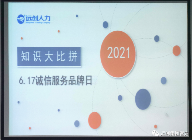 诚信是立身之本,是企业生存及发展壮大不可或缺的要素。6月17日,是远创人力资源集团的第五个诚信服务品牌日,集团一直秉持着诚信、务实、创新、专业的八字精神。为进一步提高小伙伴们的诚信意识,营造诚信风尚、塑造诚信形象,集团特组织开展了以”诚信是销售最好的产品”为主题的技能知识抢答赛。