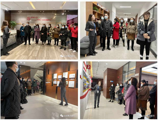 参观团一行先后参观了集团发展历程版块、党建文化长廊、职业技能等级认定评价机构以及职工天地等区域,在集团讲解员的介绍下,对党群文化体系、经营理念、企业文化以及发展历程有了更全面的了解。