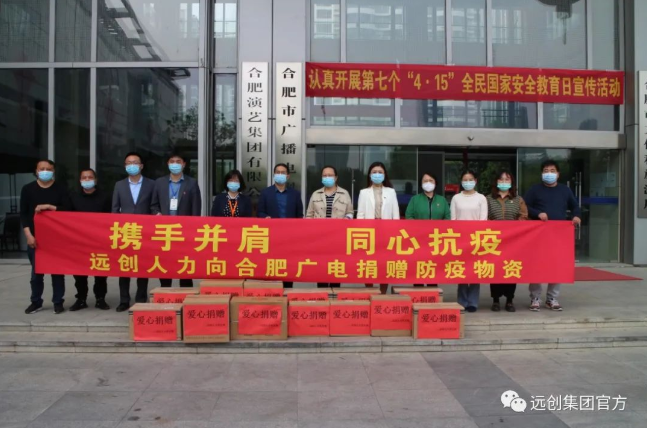 2022年4月19日下午,合肥市人大代表、远创人力资源集团总裁杨先云携集团党支部向合肥广电捐赠医用口罩、消毒湿巾、免洗洗手液、酒精喷头、牛奶等爱心防疫物资,为疫情防控尽绵薄之力。