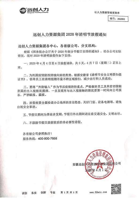 关于远创人力资源集团新疆省级公司2019年古尔邦节的放假通知|