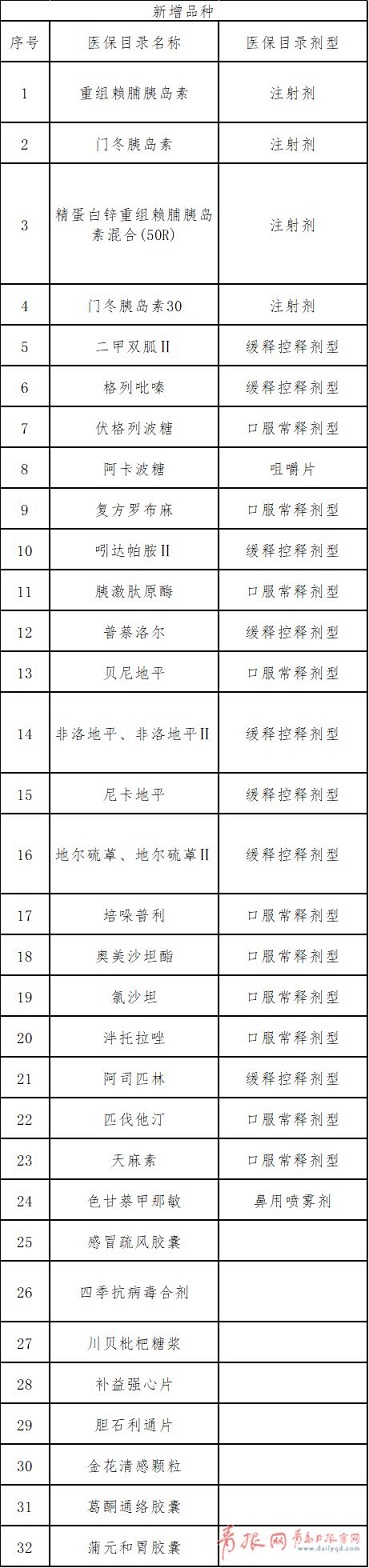 新增32种门诊统筹用药名单