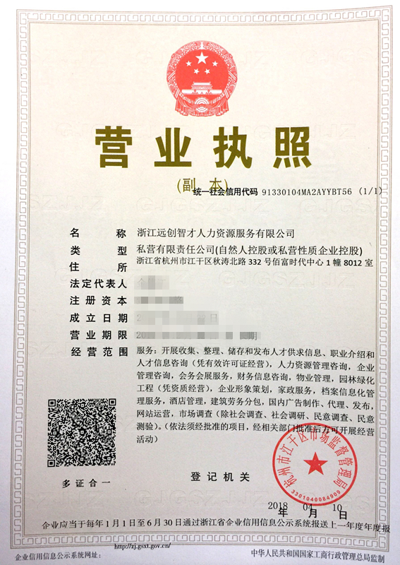 浙江远创智才人力资源服务有限公司成立于2017年12月,地址位于浙江省杭州市江干区,是一家集人才中介、人事代理、劳务派遣、业务外包等各项服务的人力资源综合外包服务公司。