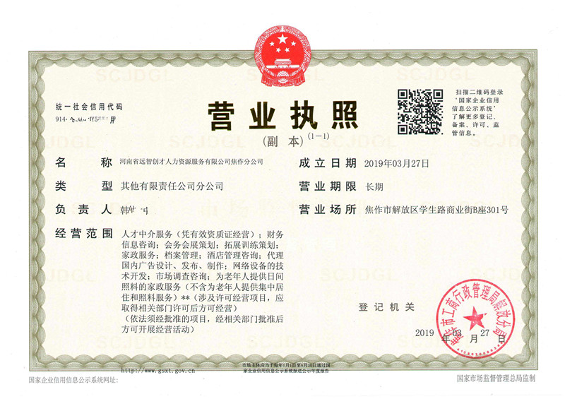 热烈庆祝远创人力河南省级公司焦作分公司于2019年3月27日正式成立,远创人力集团旗下省级,分,子公司已达80家。
