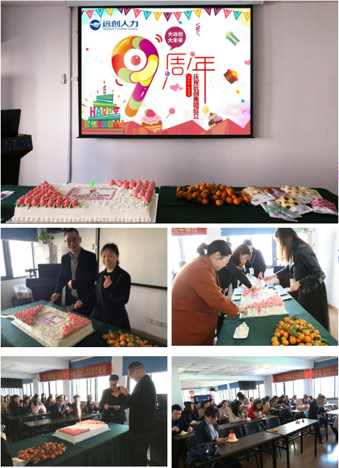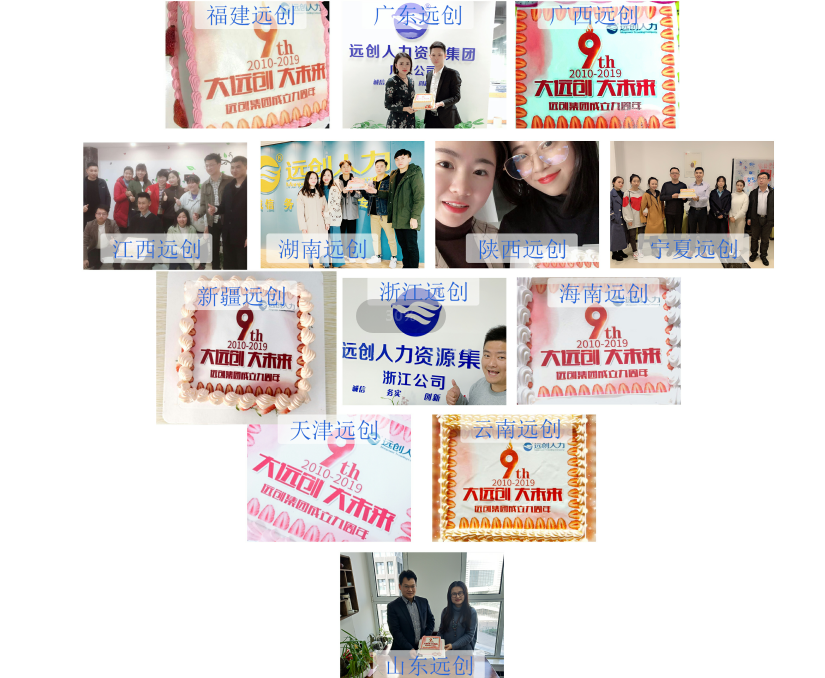 今天,远创人力资源集团全国18个省级分支机构的小伙伴们在上午10点59分共同为集团的九周年举行了生日活动。