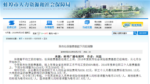 伴随着平均工资的增加,社保缴费基数也随之上调。2016年度蚌埠市社会保险缴费基数已经确定,从七月份开始执行。