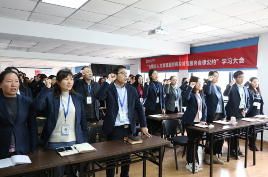 会议由远创人力资源集团培训中心徐海峰主持,组织全体员工专题学习关于合肥市人力资源服务协会下发的《合肥市人力资源服务机构诚信服务自律公约》,并深刻领会文件精神,号召全体员工树立诚信为本、以信立业的理念,在服务实践中提升诚实守信、依法经营的法制观念和道德意识。